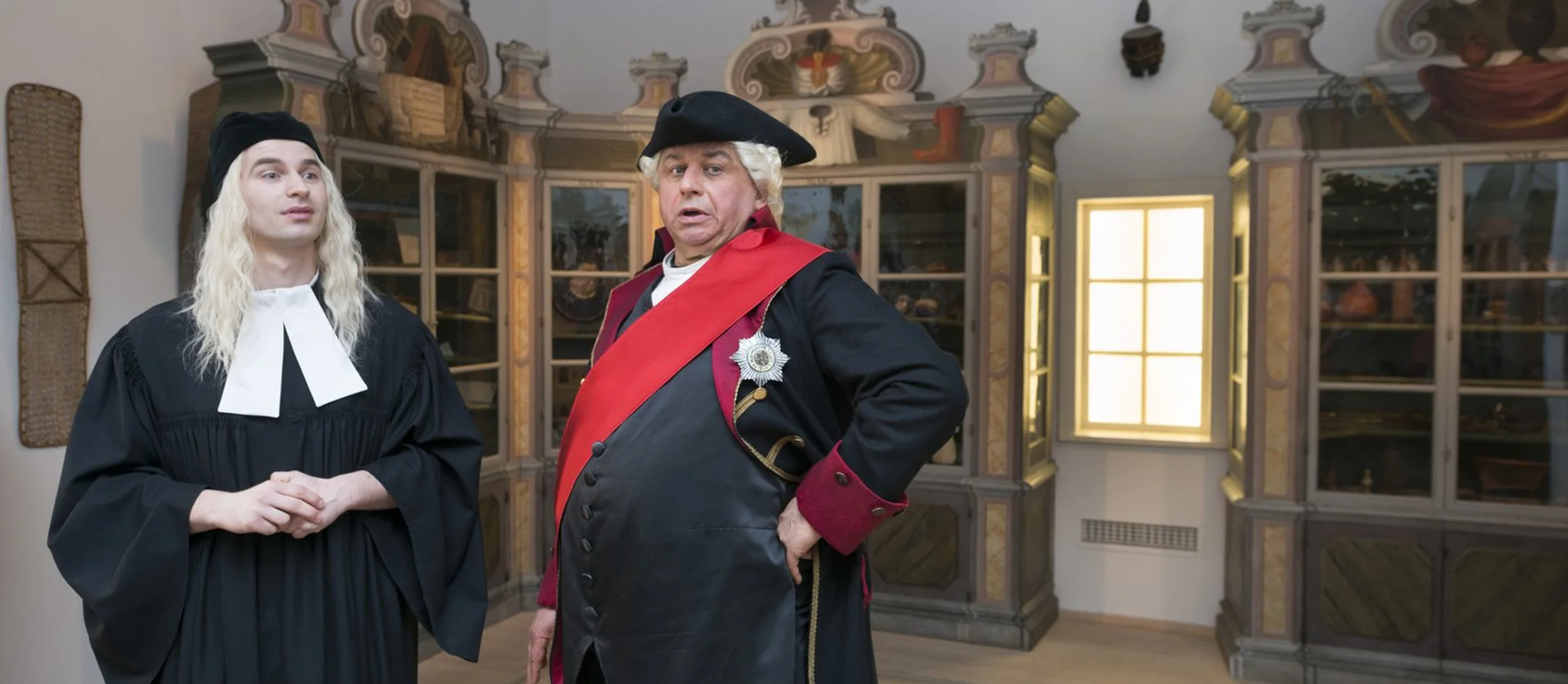 Am 12. April 1713 besuchte der preußische König Friedrich Wilhelm I. die Schulstadt August Hermann Franckes, um das Werk zu besichtigen, das so viel Aufsehen in seinem Land erregte und weit über dessen Grenzen hinaus berühmt war. Es war der Antrittsbesuch des neuen Kurfürsten und Königs in Halle. Für August Hermann Francke war er von größter Brisanz. Dank eines handschriftlichen Manuskripts aus dem Archiv der Franckeschen Stiftungen wissen wir heute genau, welchen Weg die Führung nahm und worüber Francke und der König sprachen. Als Theaterführung durch das Historische Waisenhaus wird dieses Treffen nun von Matthias Brenner (Regie und Chronist), Hilmar Eichhorn (König) und David Kramer (Francke) in Szene gesetzt.