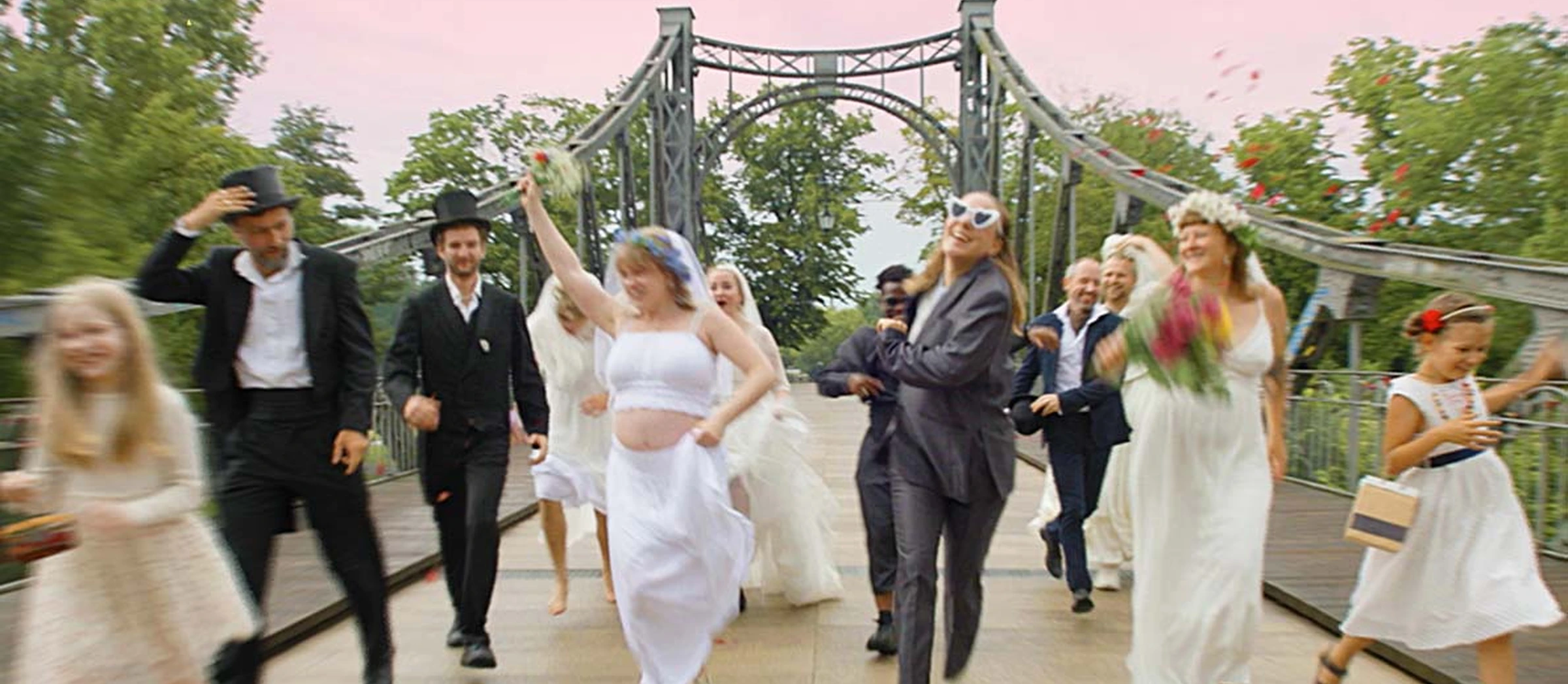 Frohe Zukunft, eine laute, bunte und sexy Brassband aus Halle mit schnellen Balkanbeats, derben Hiphop-Interpretationen und New-Orleans Sounds, bei denen Schweiß und Liebe fließen. Die Band ist nicht nur live unverschämt und geht direkt rein in Bein und Herz.