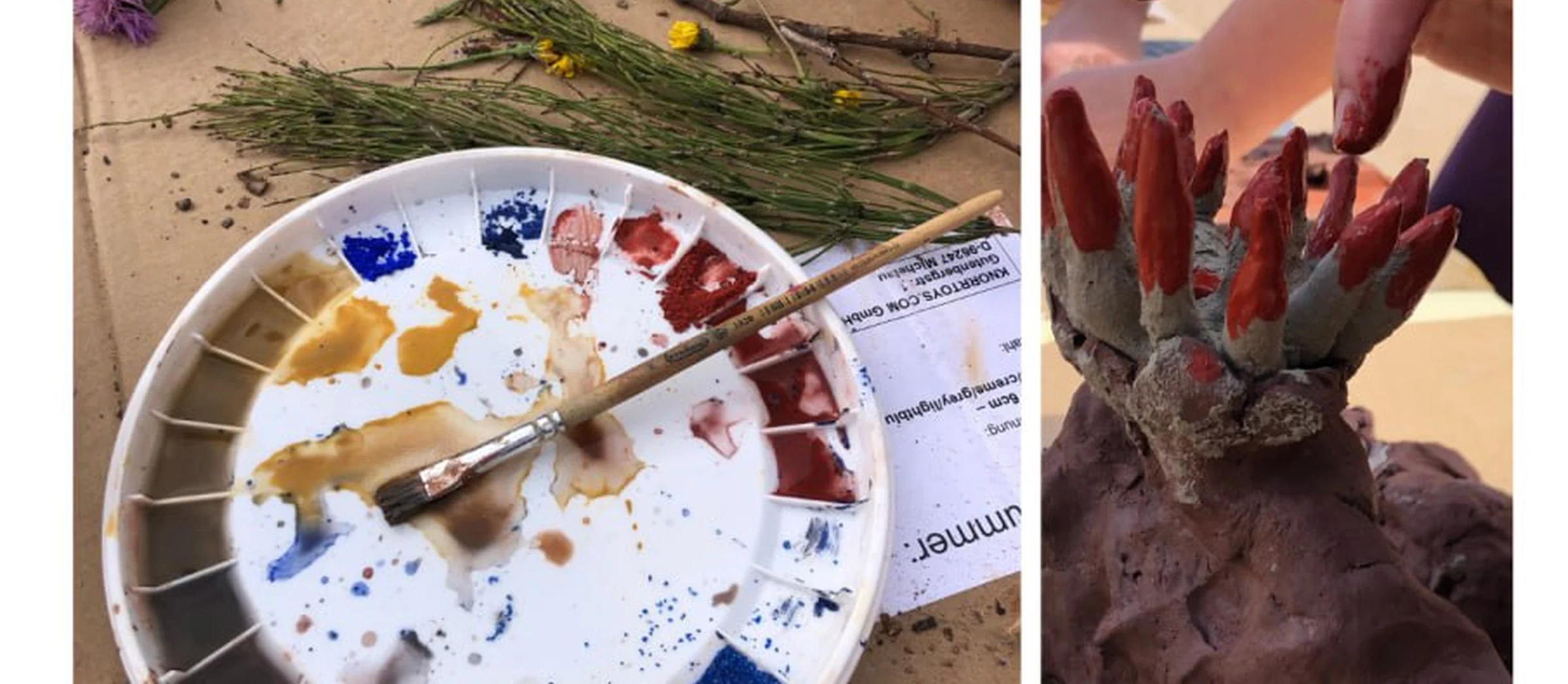 Wir laden euch ein zu einem Workshop Format in dem Kinder und Jugendlichen ab 8 Jahren mit Lehm experimentieren und dabei eigene Reliefs gestalten können. In diesen zwei Tagen dürfen die Kinder spielerisch mit dem Werkstoff Lehm in Verbindung kommen und ihren eigenen Projektideen nachgehen. Es wird gebaut, geformt, gespachtelt, entdeckt und Farben selber hergestellt. Es werden unterschiedliche Materialien angeboten, wie Holz, Stroh, Glas, Spiel, Mosaiksteine. Dabei achten wir darauf, dass die Materialien sicher sind und altersgerecht angeleitet werden.